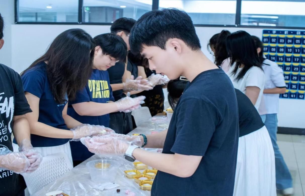 “冰皮月饼制作”环节将活动推向高潮,在老师的指导下,中韩学生分工合作,揉面团、包馅料、压模具,一个个精致的冰皮月饼逐渐成型,大家品尝着自己亲手制作的月饼,分享着各自国家的饮食文化,在味蕾的满足中感受着中秋“团圆”的真谛;活动尾声,参与者互相展示作品并合影留念,现场洋溢着欢乐和赞叹。
