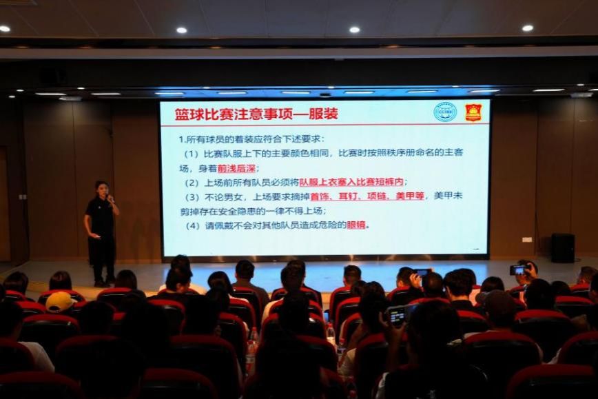 会上,跨境商务学院张益豪老师解读本次比赛的赛程安排,对比赛规则、参赛人员、安全事项以及奖项设置进行细致讲解。裁判长于茜端老师讲解比赛规则与判罚标准,对服装要求、赛场管理、最新裁决要求、违例情况、犯规类型作出详细说明。