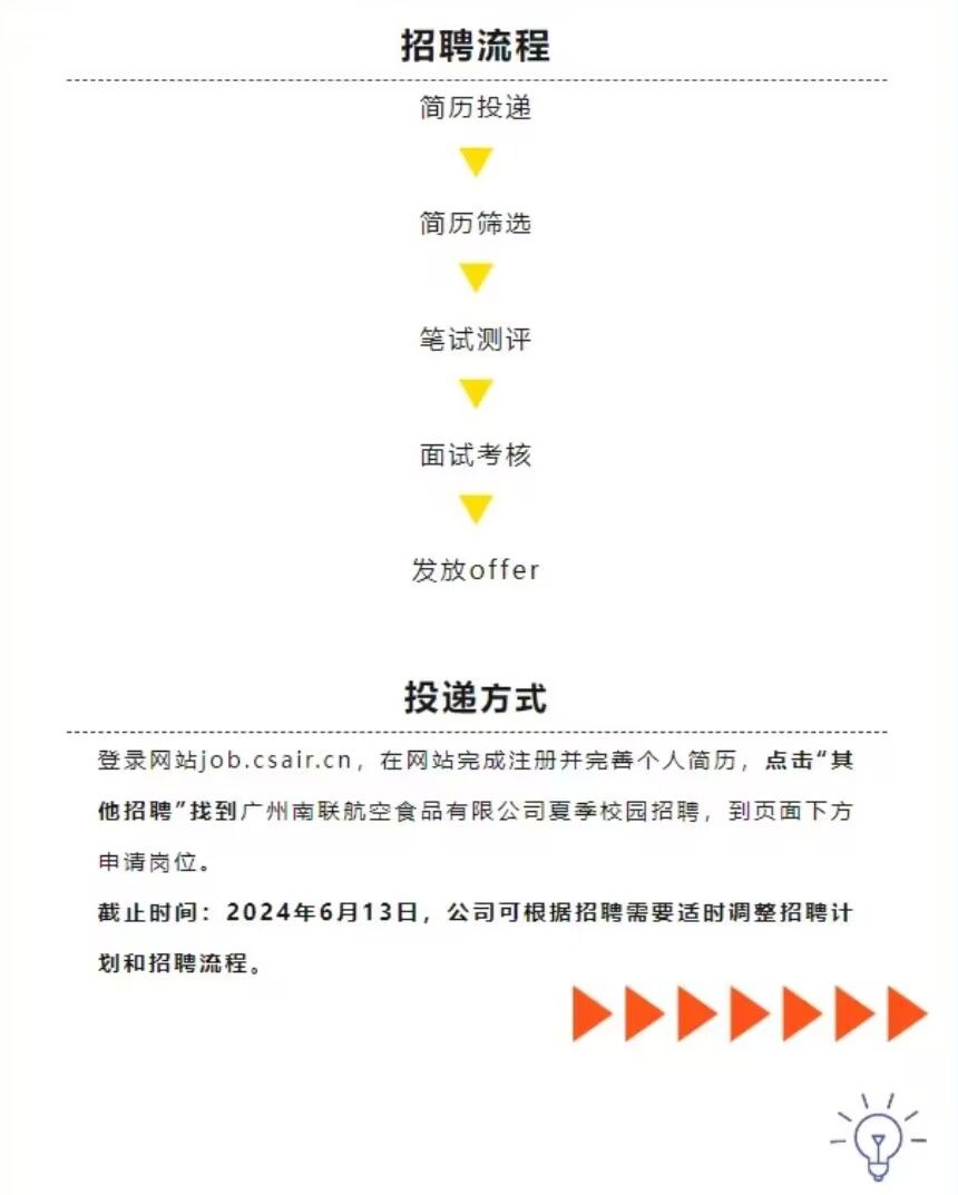 中国南方航空 南联航空食品2024年夏季校园招聘!